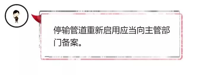 停止运行、封存的管道需要重新启用的,应当按照国家有关规定检验合格,并在启用前告知原备案的管道保护主管部门。