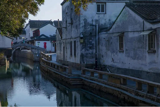 路以水陆并行,河街相邻特色著称。河驳岸上设石栏,石桌石凳点缀其中,拾级而下的石埠苔痕斑驳,并有众多雕刻精美的系缆石,河两岸多为粉墙黛瓦民居。