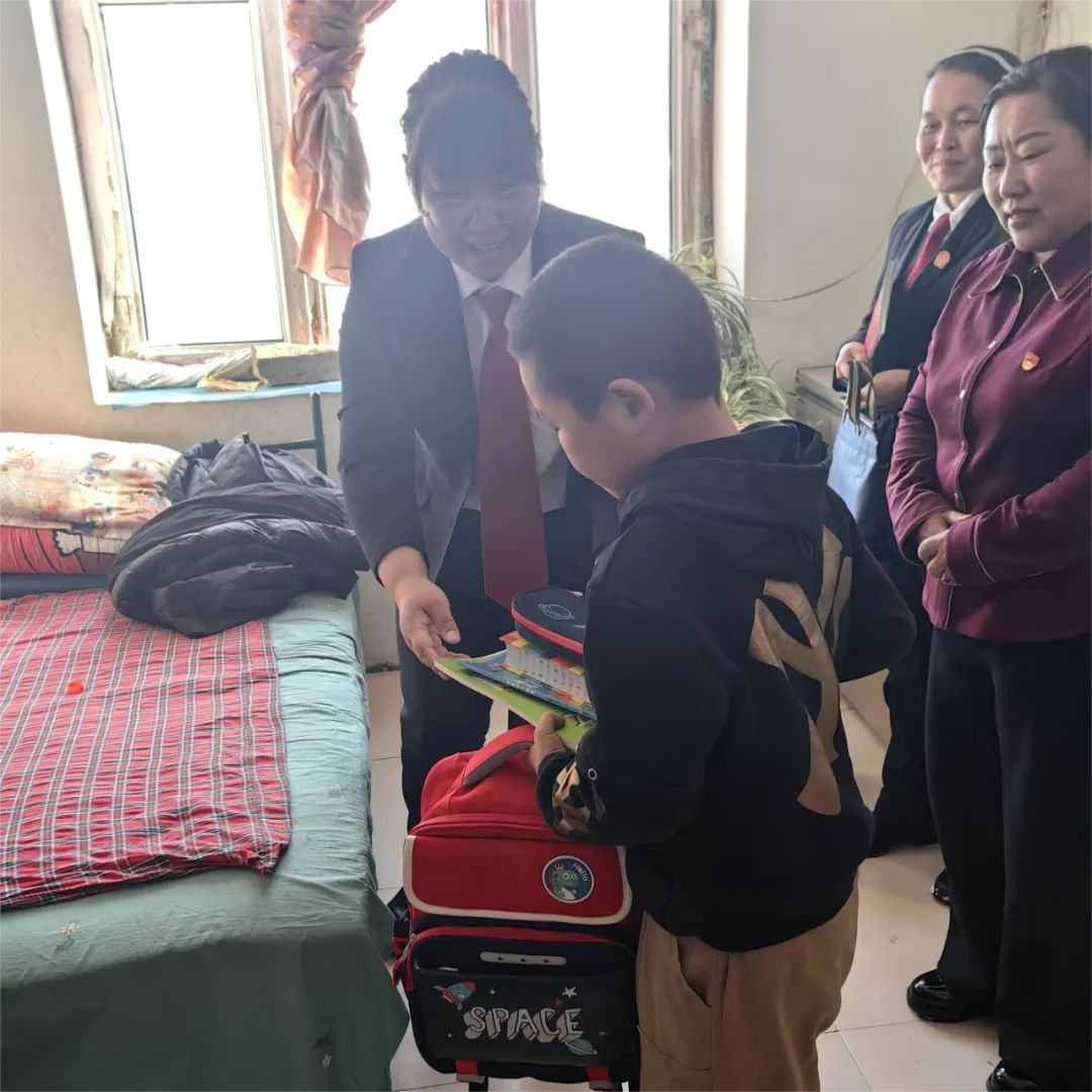 “法官妈妈”协同辉苏木中心校老师,前往学生家进行家访,在开学前为他们送上一份关怀和温暖。来到学生家中,将精心准备的书籍送到孩子手里,并与他们进行亲切互动,详细了解孩子们假期生活及在学习和生活上的困难和需求,鼓励家长和孩子继续保持昂扬向上的心态,祝愿孩子们迎接一个开心愉快的新学期。