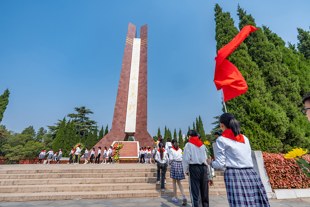 2023年4月1日,河南洛阳,“铭记历史缅怀英烈 崇尚英雄争做先锋”主题活动在洛阳市烈士陵园举行。视觉中国 资料图