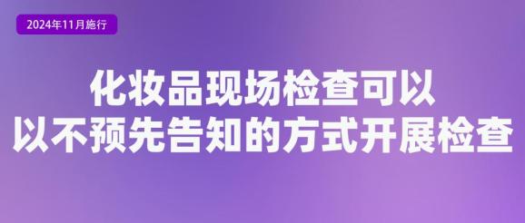 国家药监局发布了《化妆品检查管理办法》,《办法》是我国化妆品监管领域第一次系统地规范化妆品检查工作的规范性文件,自2024年11月1日起施行。《办法》提出,现场检查可以预先告知被检查对象检查安排,也可以以不预先告知的方式开展检查。非现场检查包括对被检查对象提交书面材料的检查、利用数字化技术手段开展远程检查等。派出检查单位应当派出具备与检查工作相适应的法律知识、专业知识、培训经历的检查人员开展检查。检查人员应当不少于两名。必要时,派出检查单位可以邀请相关领域专家参加检查工作。