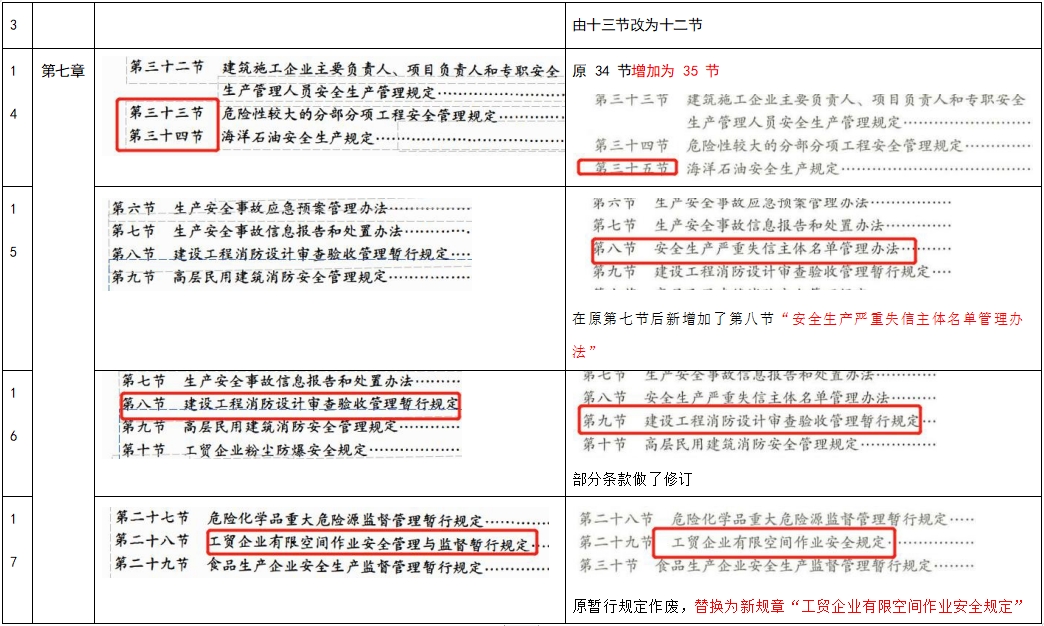 第七章 由三十四节增加为三十五节,新增加了第八节“全生产严重失信主体名单管理办法”