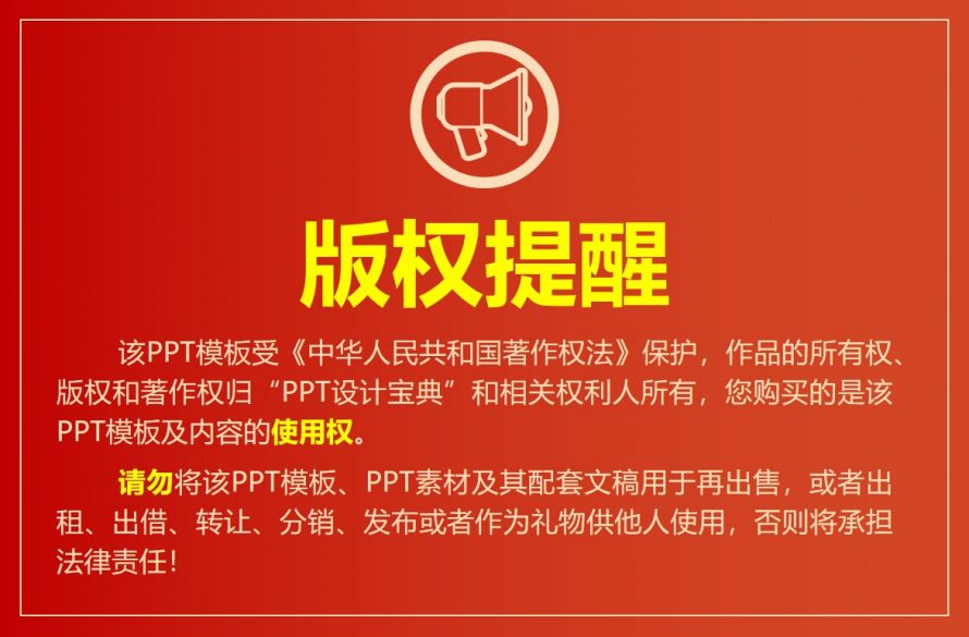 声明:本站所有PPT作品,如无特殊说明或标注,均为本站原创发布。制作不易,下载后请勿扩散转发。如若本站内容侵犯了原著者的合法权益,可联系我们进行处理。