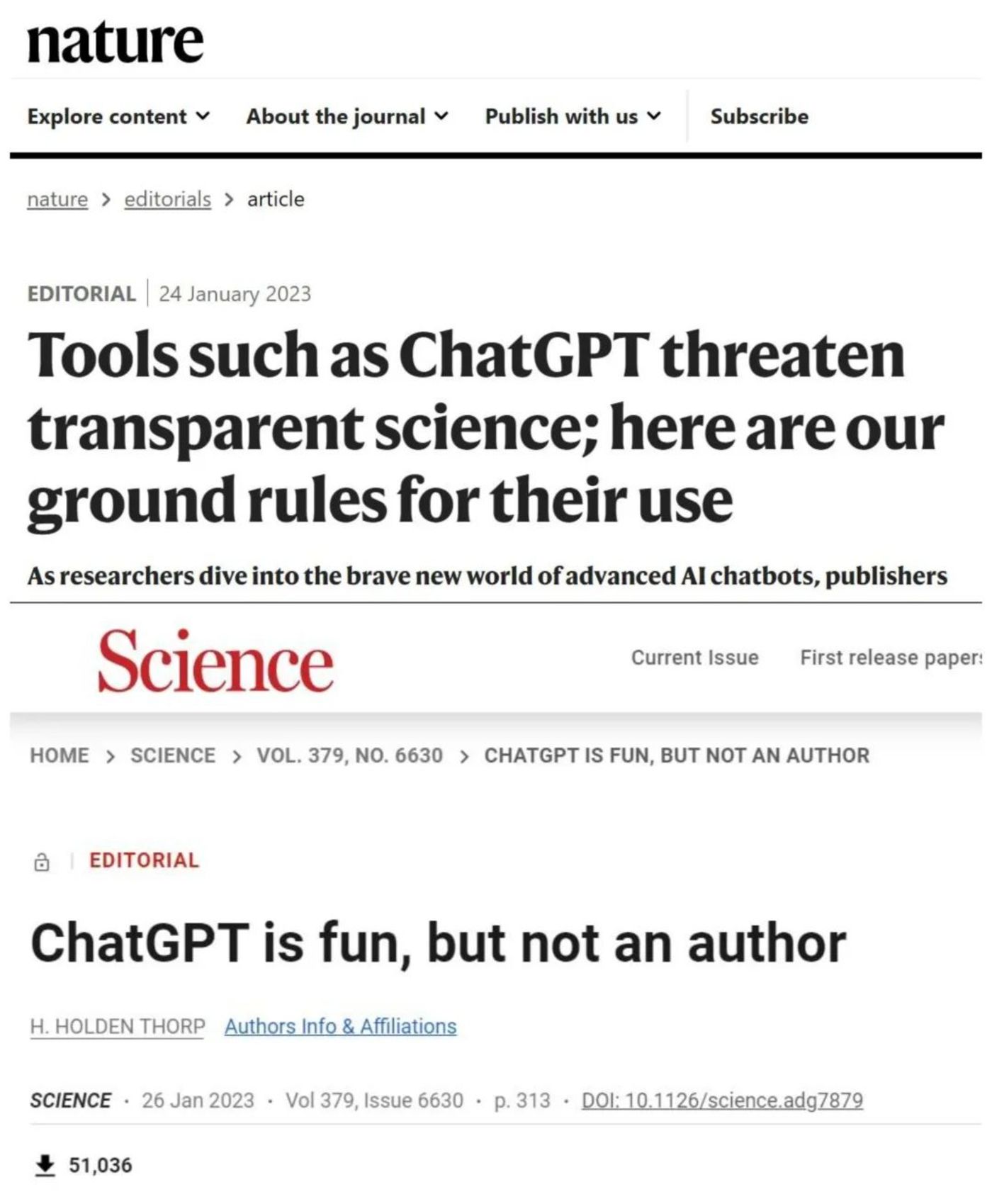 从学术层面而言,《Science》《Nature》等明确规定:ChatPGT等大模型不可以称为作者。因为“作者身份意味着要对作品负责。”而ChatGPT虽然有强大的语言创作能力,但其生成的内容不能完全保证正确性,甚至在一些专业领域出现错误概率会很高。