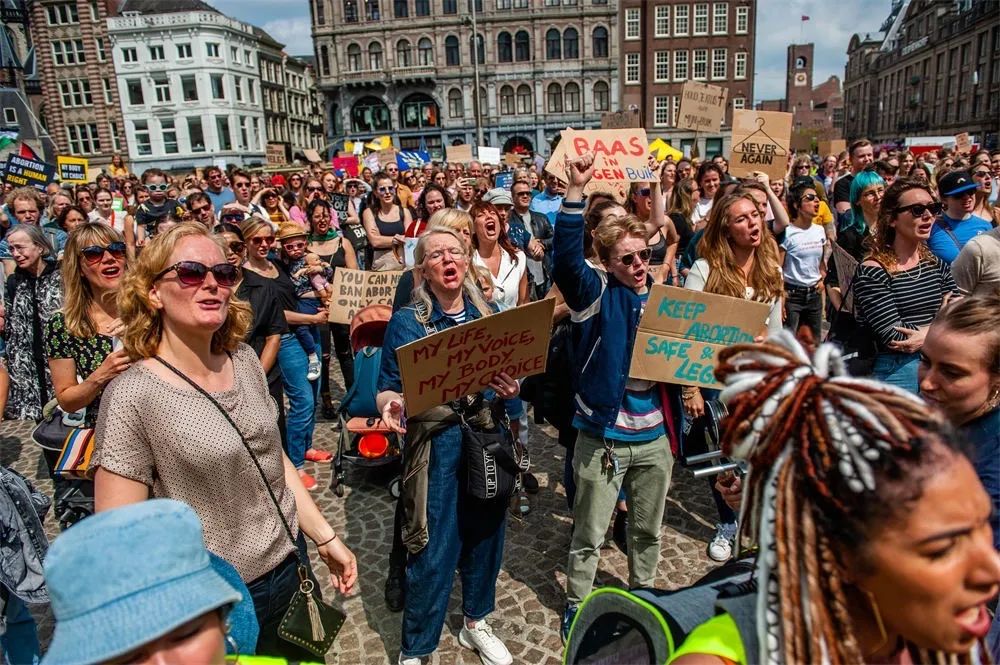 2022年5月7日,荷兰阿姆斯特丹妇女举行街头示威活动,声援美国维护妇女堕胎权的大规模抗议