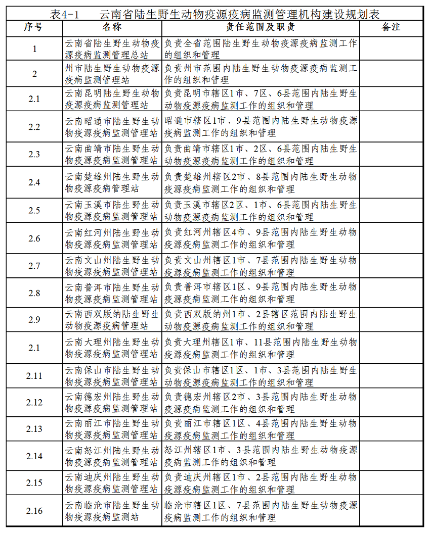 (4)云南省陆生野生动物疫源疫病监测体系和省级监测站建设管理办法(试行);