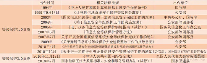 1994年,国务院正式下发《中华人民共和国计算机信息系统安全保护条例》,首次提出信息安全等级保护的概念。随后的十余年内,我国陆续出台了一系列的政策法规。