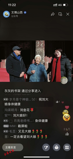 “圣母是祥和、温润、慈祥的姿态,青龙则是飞扬、桀骜的姿态……”随着伊宝教授的生动讲解,网友们意犹未尽,连称看得不过瘾。直播尾声,最为温情的一幕出现了,在主持人孙轶琼介绍下,汾阳后土圣母庙的守护人刘金花出现在镜头前,80岁高龄的她守护这座庙宇32年,体现了民众参与古建保护的努力,也彰显了山西“文明守望工程”的温情一面。屏幕上,网友们纷纷留言刷屏:“为民间守护人点赞”“为山西古建推介官点赞”!