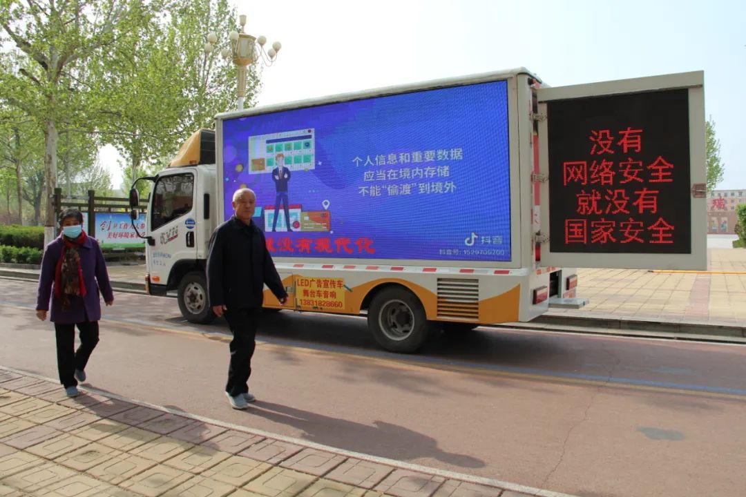 以“没有网络安全就没有国家安全”为活动主题,于全民国家安全教育日在全县较大的广场,重点围绕上网安全、网络辟谣、网络防诈等内容,发放普法手册、宣传彩页、普法清凉扇5000余份。屏幕车巡回播放网络安全动漫普法视频,生动有趣的宣传形式引得群众驻足观看。