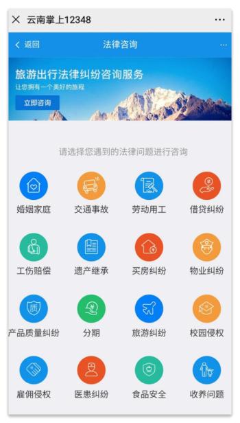 点击智能法律咨询便捷入口。提供16类常见法律问题的智能咨询服务,选择遇到的问题类型。根据系统的提示按照步骤填写问题的具体情况,系统将为您出具一份专业详细的法律咨询意见书,24小时在线免费提供服务。