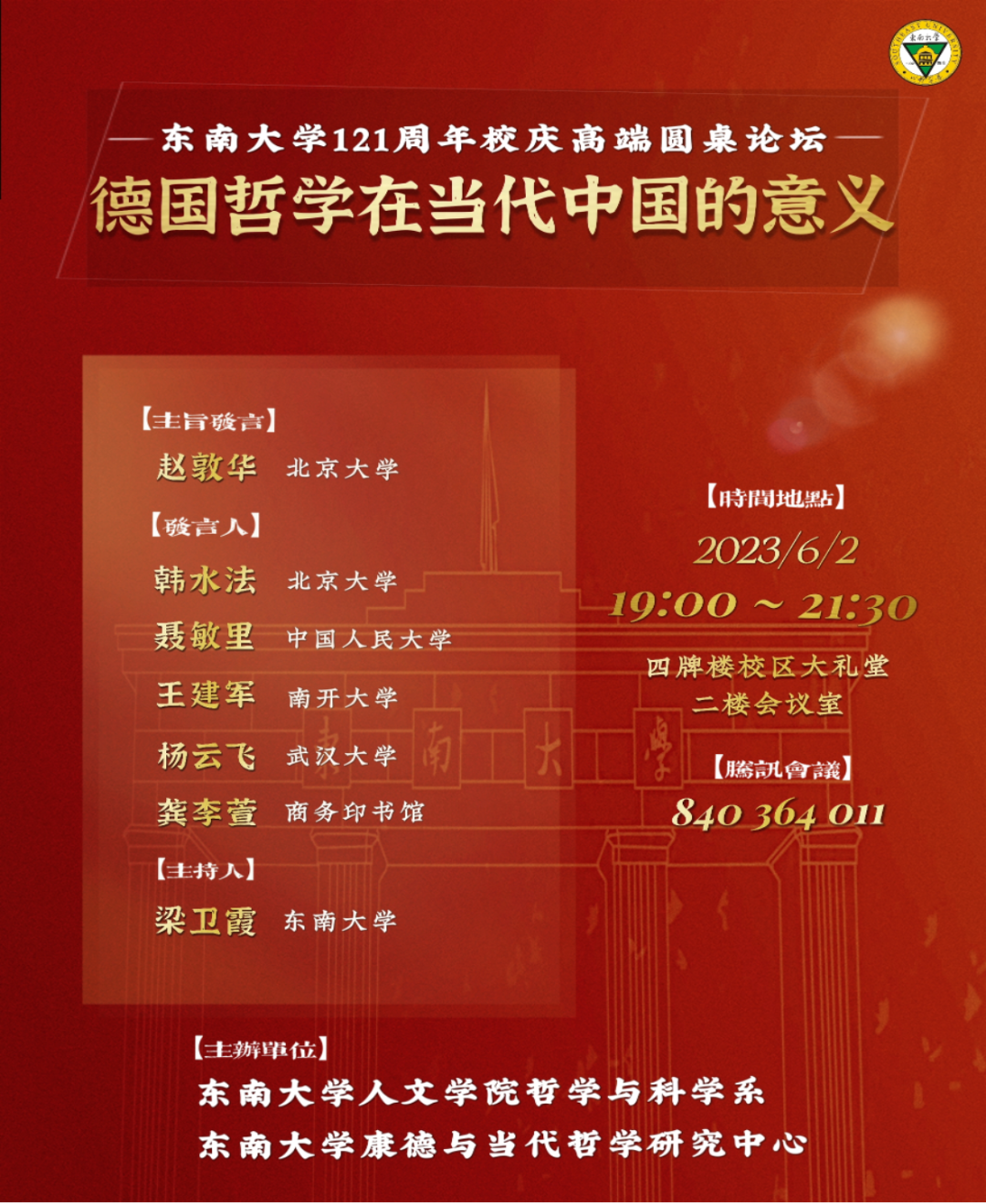 主办:东南大学人文学院哲学与科学系,东南大学康德与当代哲学研究中心
