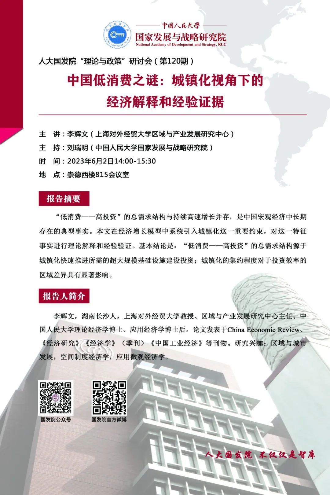 参与方式:中国人民大学崇德西楼815会议室