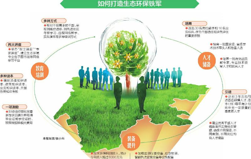 今年是污染防治攻坚战的决胜之年,必须确保年底前全面完成污染防治攻坚战阶段性目标。但随着污染防治攻坚战向纵深推进,越往后越是难啃的“硬骨头”,加上生态环境保护涉及面广、专业性强,监测、督察、执法、环评等都需要大量专业人才,建设一支高素质生态环保铁军显得尤为迫切。