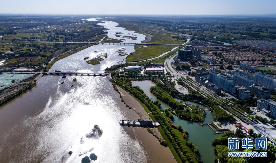 宁夏石嘴山市星海湖及周边水系贯穿城市(2018年7月31日无人机拍摄)。 新华社记者 王鹏 摄