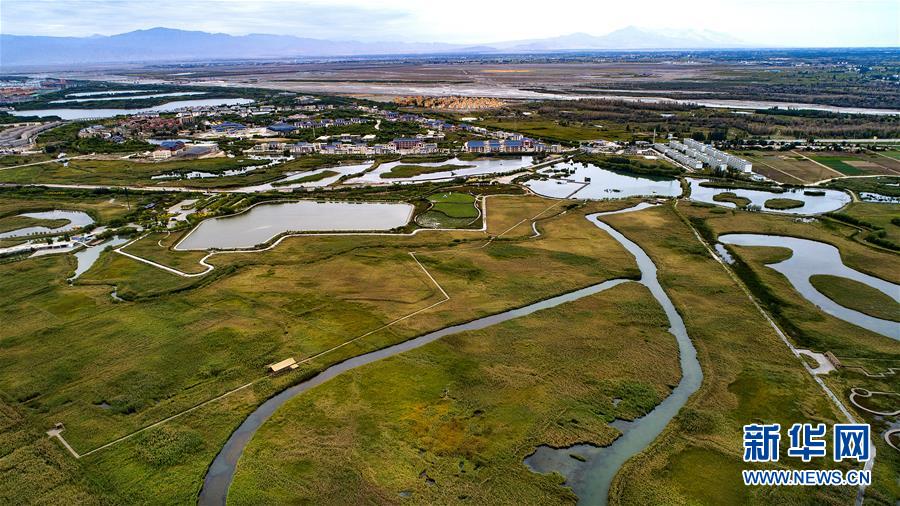 这是甘肃省张掖国家湿地公园一角(2018年9月5日无人机拍摄)。 新华社记者 陶明 摄
