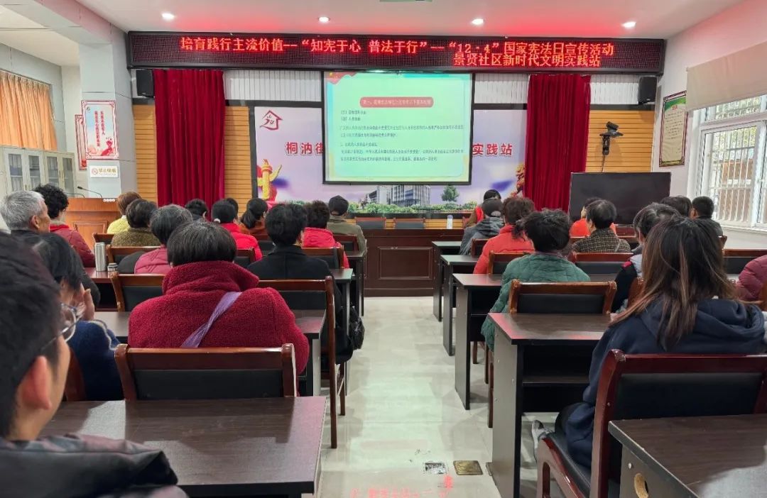 桐汭街道妇联组织市民观摩法治宣传教育基地,举办法律知识专题讲座、知识竞赛,在辖区幼儿园、新时代文明实践所发放宣传手册,引导群众自觉学习法律知识,推动形成尊法、学法、守法、用法的良好法治氛围。