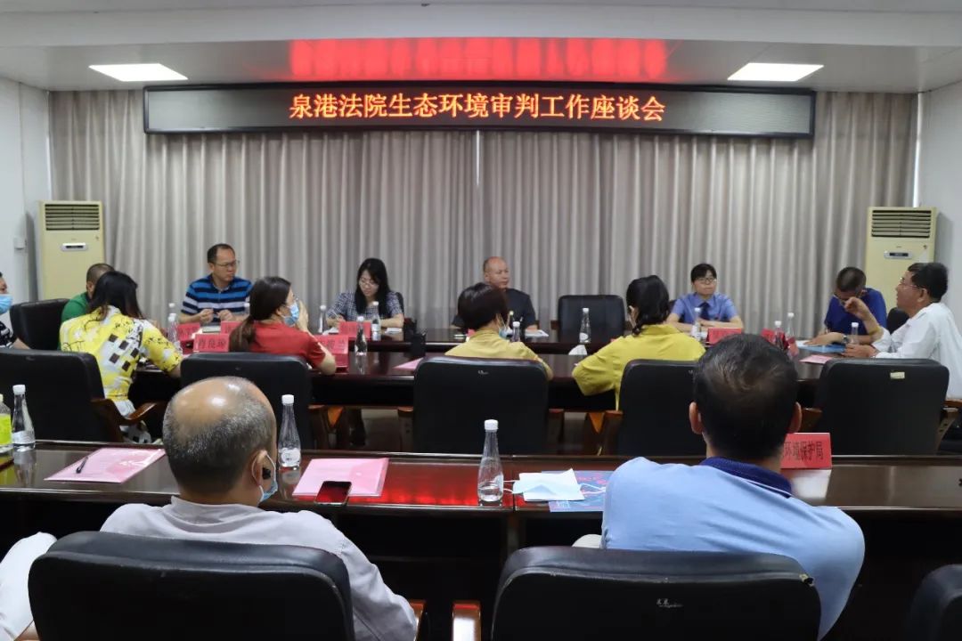 泉港法院以“发挥司法作用,促进生态文明”为主题,结合辖区石化产业分布较多的特点,邀请区人大代表、政协委员、生态局工作人员及危化企业代表观摩被告人肖某某污染环境一案庭审,并在庭审后召开生态环境审判工作座谈会听取各方意见。