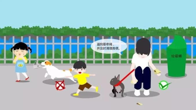 (六)应当为犬只佩戴粪兜,或者携带清洁用具,即时清理犬只粪便;