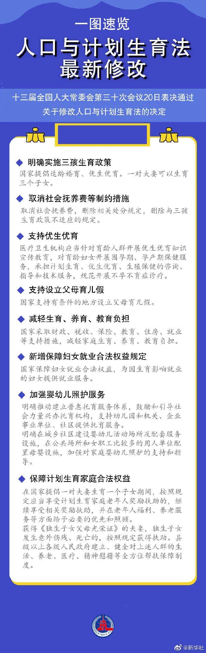 为优化生育政策、促进人口长期均衡发展,此次对这部法律作出了哪些重要修改?戳图速览↓