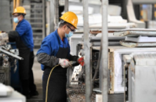 苏宁易购回收工作人员在天津一小区搬运一台回收的旧洗衣机(10月23日摄)。最近,多地以旧换新政策扩围升级,消费潜力持续释放,废旧家电回收数量激增。在天津、广西等地一些拥有废弃电器电子产品拆解处置资质的正规家电拆解企业,部分拆解线处于不定期运行或停工闲置状态,企业产能尚未完全释放。