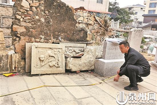 区教育文体旅游局文管人员对一般文物点浮山霞埕宫奉宪碑定线落图实地测量