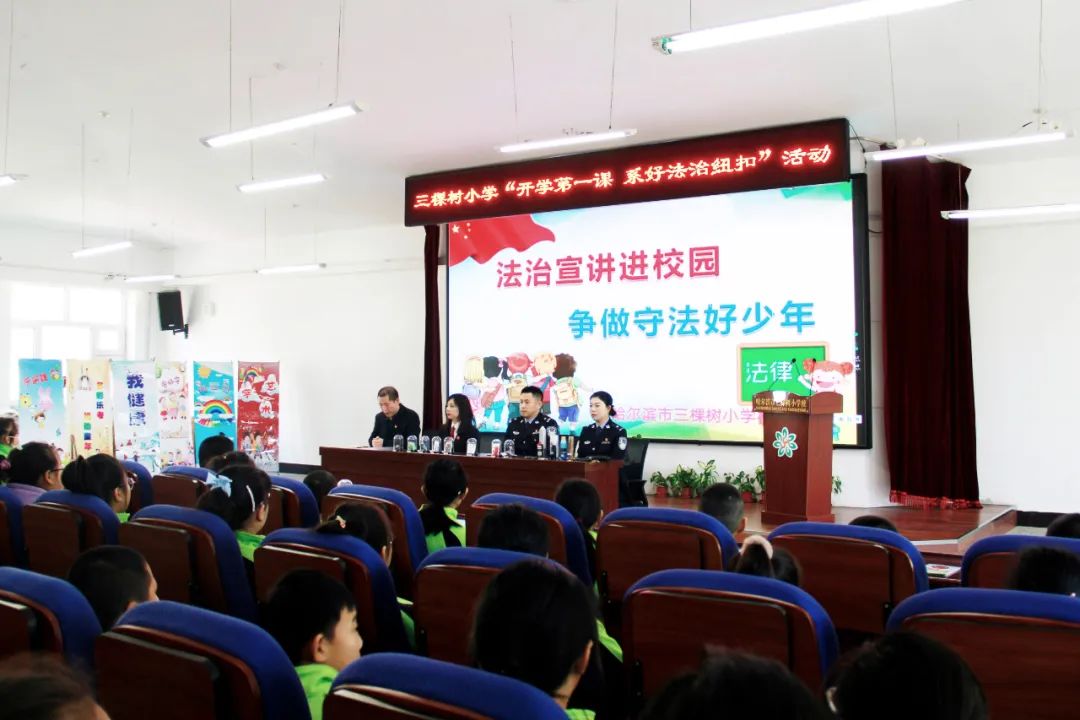近日,哈尔滨市公安局组织公交分局、禁毒支队联合道外区人民法院,走进三棵树小学开展普法教育活动,民警和法官共同为师生们讲授了一堂生动的普法课,进一步增强了师生们的法治意识,切实提升了校园安全防范水平。
