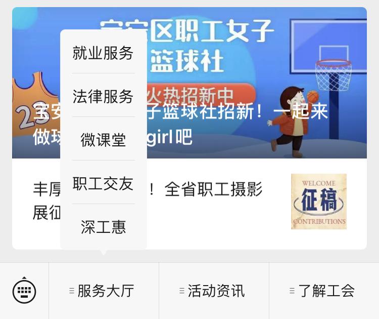 1.关注“宝安工会”微信公众号