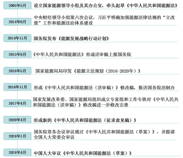 经过送审稿和征求意见稿的形成、修改、完善等一系列前期工作,终于在2024年4月,草案提请审全国人大审议,标志着《能源法》立法工作迈出关键性一步。