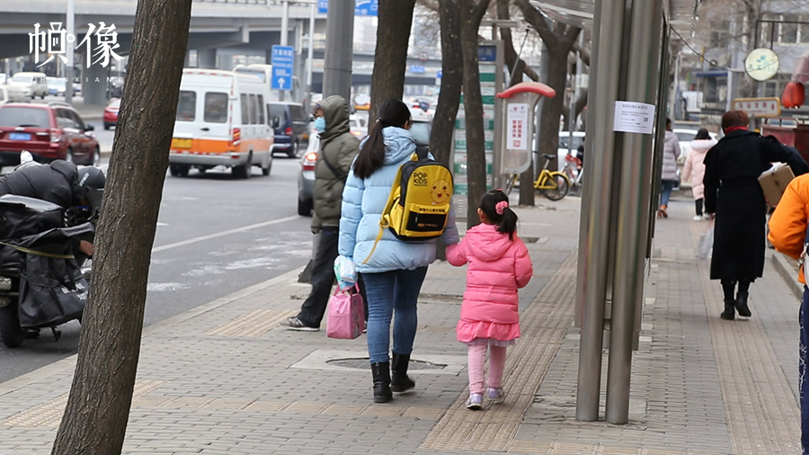 2018年3月6日下午,北京海淀实验小学附近,一女子牵着刚下学的女儿走在回家的路上。中国网记者 赵超 摄