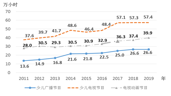 图8 2011—2019年少儿广播节目、少儿电视节目、电视动画节目播出时间