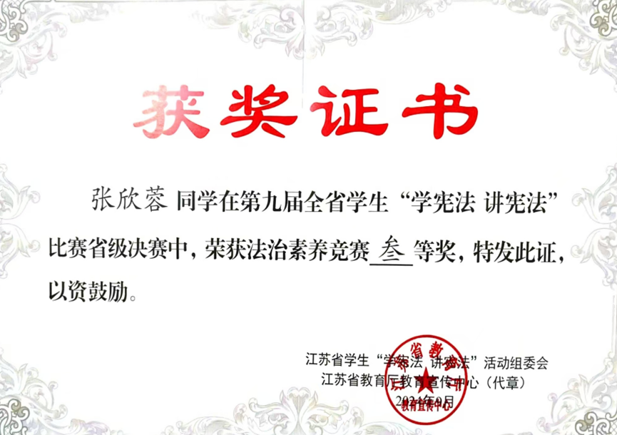 本届“学宪法 讲宪法”活动共分为演讲比赛和素养竞赛两个赛道,主要围绕宪法、民法典、未成年保护法等法律法规内容展开,全省13个设区市和100余所高校遴选出190余名选手共同参与。比赛期间,学校党委宣传部高度重视参赛组织工作,给予充分关注和支持,马克思主义学院鹿存礼老师精心指导,我校学生最终取得优秀成绩,首次在法治素养竞赛项目中获奖。