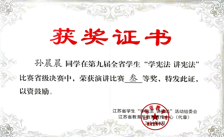 近日,由省教育厅主办、省教育厅教育宣传中心承办的第九届全省学生“学宪法 讲宪法”活动落下帷幕,我校第一临床医学院孙晨晨、张欣蓉分别获得演讲比赛和素养竞赛三等奖。