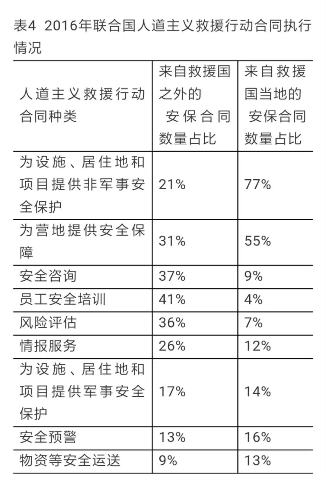 中国在加大海外维和力度的同时,由于维和本身远离国土,成本高昂,物资、装备、人员等运输复杂,致使近年来中国面临的维和安全风险方面的压力倍增(见表4)。从中国在非洲及亚洲一些国家的维和实践来看,当地安全形势错综复杂,自然条件较差,运输任务繁重,维和部队的装备整治成为一项重要的日常工作任务。私营安保公司可以就近就地实施后勤保障,在维和物资保障、武器装备整治、有关工程保障、交通运输保障、业务技能培训等领域发挥重要作用,这样可以节省运输成本,相应提升后勤保障的及时性和可靠性。