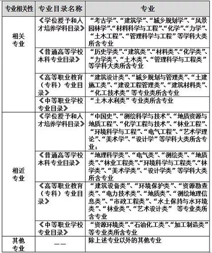 报名条件中的专业相关性,包括“相关专业”“相近专业”“其他专业”等,具体界定见下表: