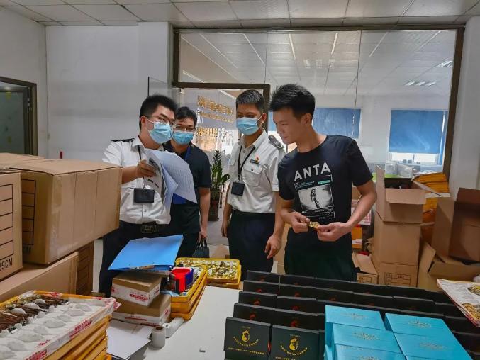 近日,光明监管局接到举报称辖区内有电商在阿里XX网络销售平台借庆祝建党100周年名义进行商业炒作。执法人员接报后第一时间登录相关网站进行核实,在页面的广告中发现2家商家确实存在通过大肆宣传建党100周年来推销纪念手表进行牟利的情况。执法人员立即前往电商所在的经营地址进行现场突查。