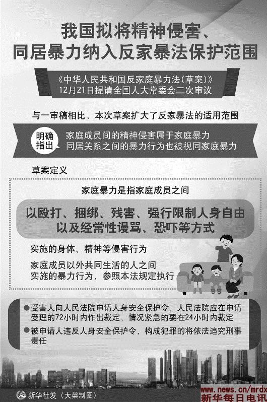 “草案在‘法律责任’部分规定,人民法院可根据情节轻重对违反人身安全保护令者处1000元以下罚款。但各人的经济状况不同,有些人不在乎这1000元,但有的家庭困难无钱,怎么办?”列席会议的全国人大代表刘桂凤建议,若将该条款改为根据情节轻重给予经济处罚,将便于法律实施。
