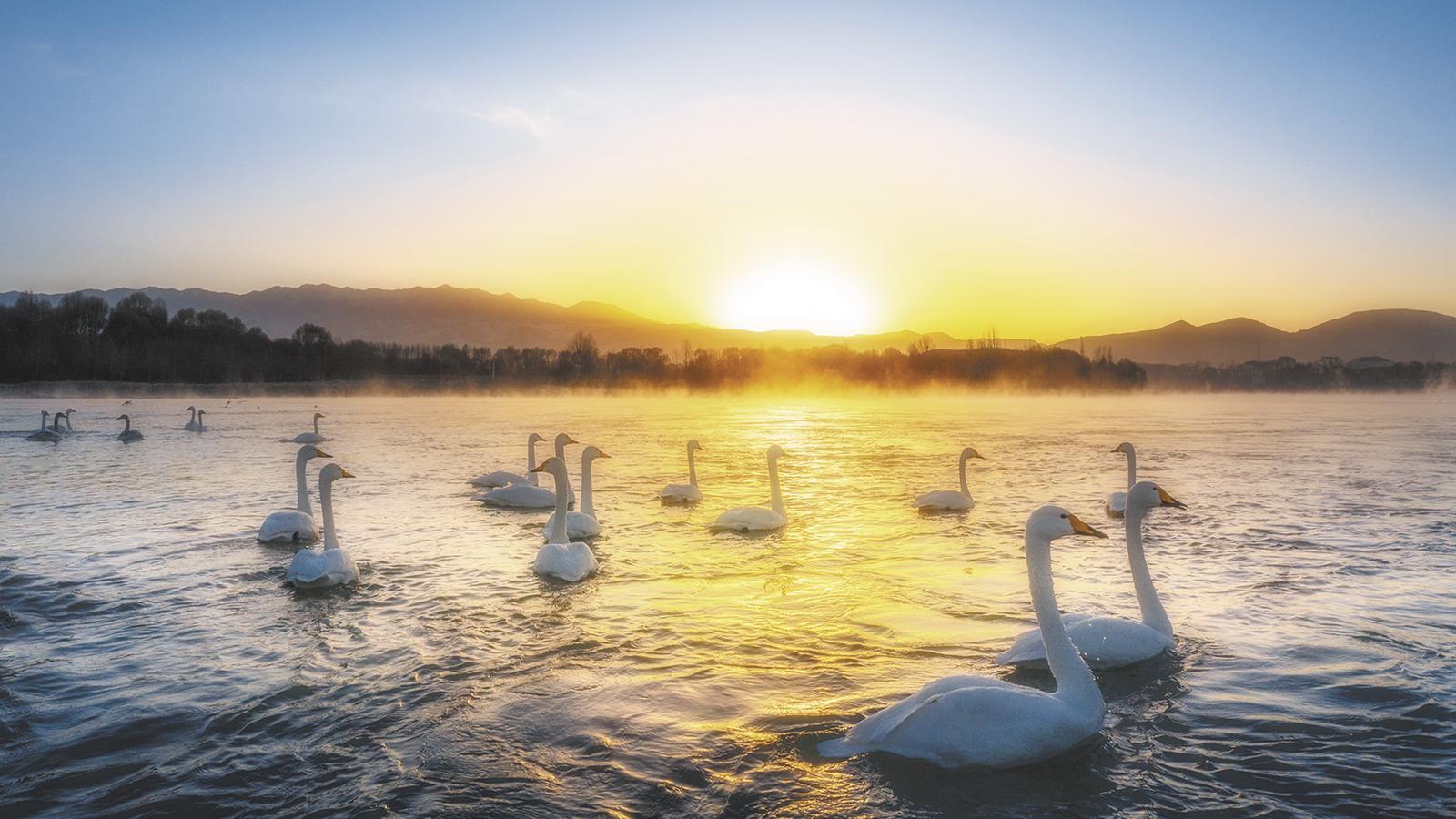 每年11月起,白天鹅便开启从西伯利亚等地到青海省海南藏族自治州贵德县境内的越冬之旅,“天下黄河贵德清”的神韵和气质成为白天鹅绝佳的避风港湾,栖息营地。