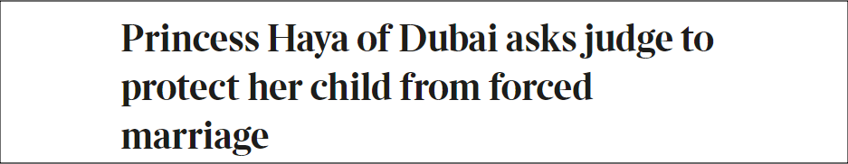据英国《泰晤士报》报道,7月30日,哈雅公主正式在英国提交诉讼,向伦敦高等法院提交婚姻保护申请,希望获得子女监护权、强迫婚姻保护令和婚姻破裂后的禁止骚扰令。这场诉讼的主要议题在于争夺子女的监护权。哈雅公主试图通过此举来保护其中一个孩子未来免受包办婚姻的束缚。