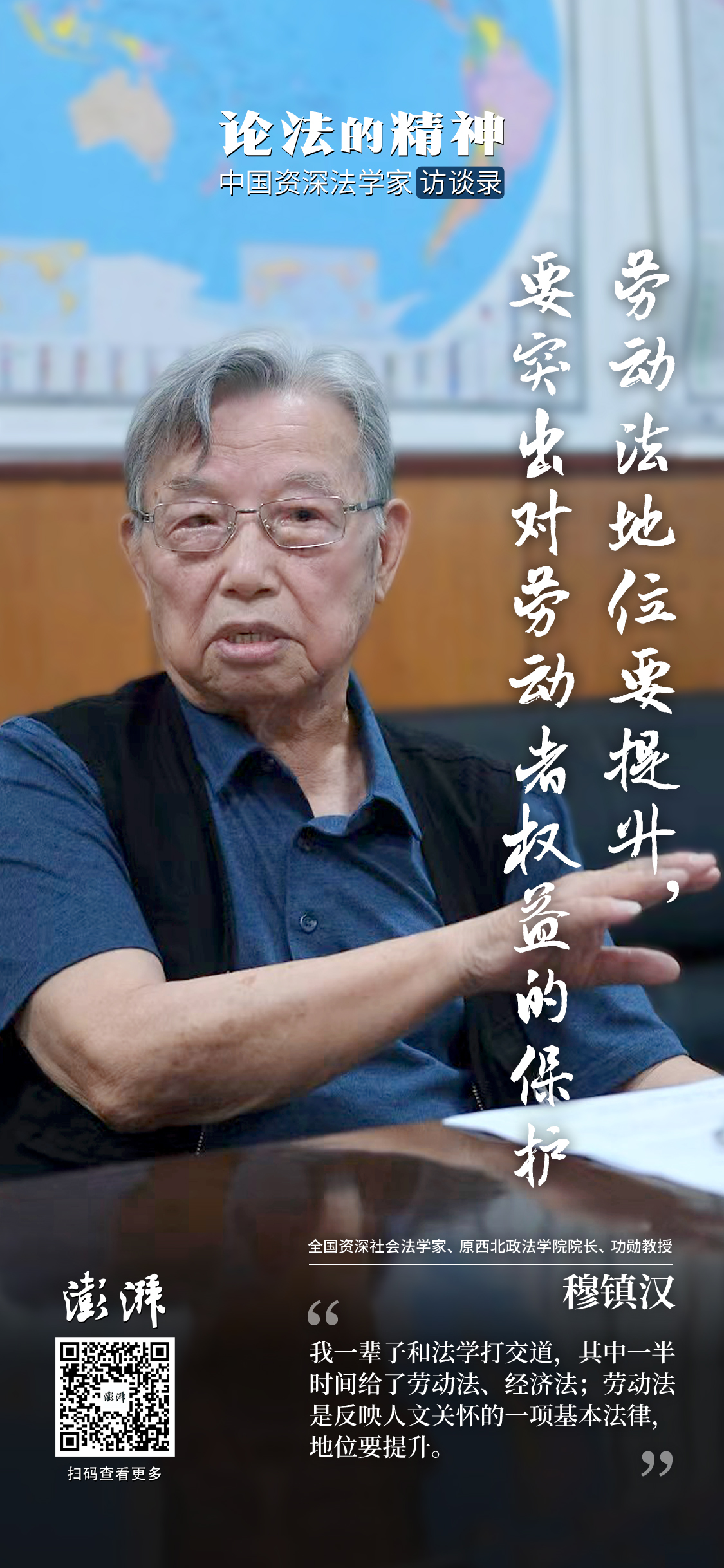 穆镇汉参与了劳动法起草过程。他坦言,自己曾极力主张把工资待遇、住房养老、生育等内容进行具体规范,但遭到反对。起草部门认为,在社会主义国家,住房、养育等都是有保障的,不需要列明。对此,穆镇汉始终保留自己的看法,“在法律制定的时候,这些基本问题就有分歧。”