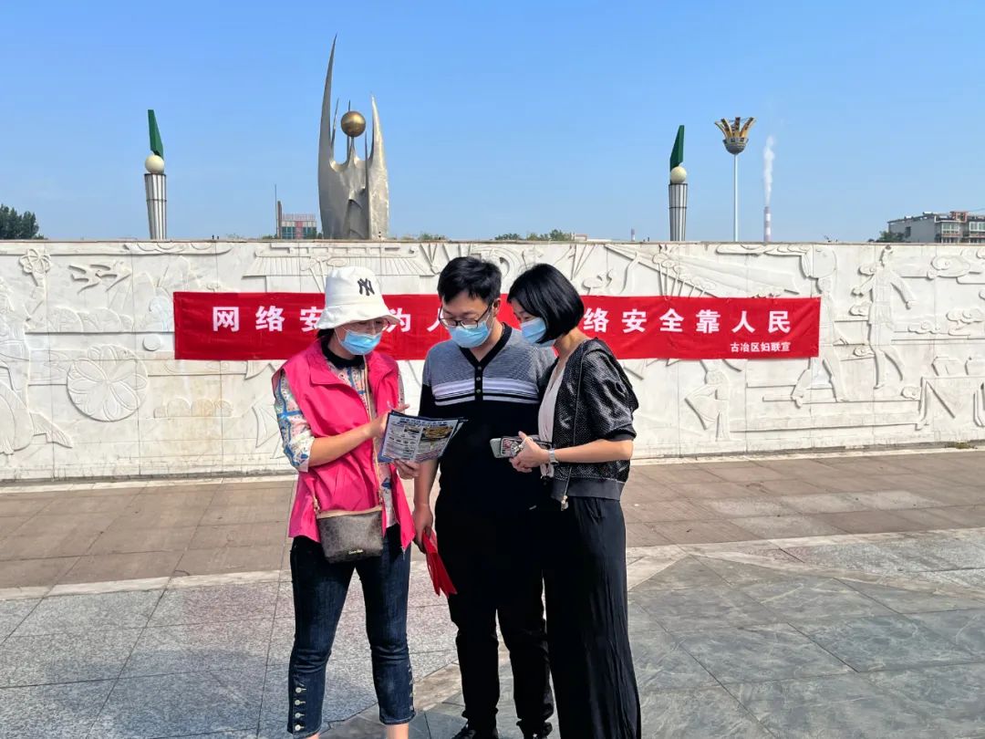 古冶区委网信办、区总工会、区妇联在林西市民广场组织开展网络安全宣传周个人信息保护日活动。活动通过悬挂条幅、现场讲解、发放宣传页等方式进行宣传,工作人员还向群众普及网络安全相关法律法规,提醒大家防范网络诈骗、不要轻信网络谣言,注意保护个人信息,发放宣传资料400余份,接受群众咨询50余人次。