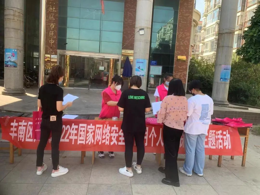 丰南区开展网络安全宣传周个人信息保护日活动。志愿者向社区家庭发放网络安全、保护个人隐私及反家暴、妇女权益保障等法律法规宣传品,面对面开展网络安全案例讲解,就APP下载使用、快递单据销毁、恶意二维码辨别、公共场所Wifi连接等常见个人信息泄露形式向广大职工、妇女群众进行宣传,提醒大家注意个人信息保护。