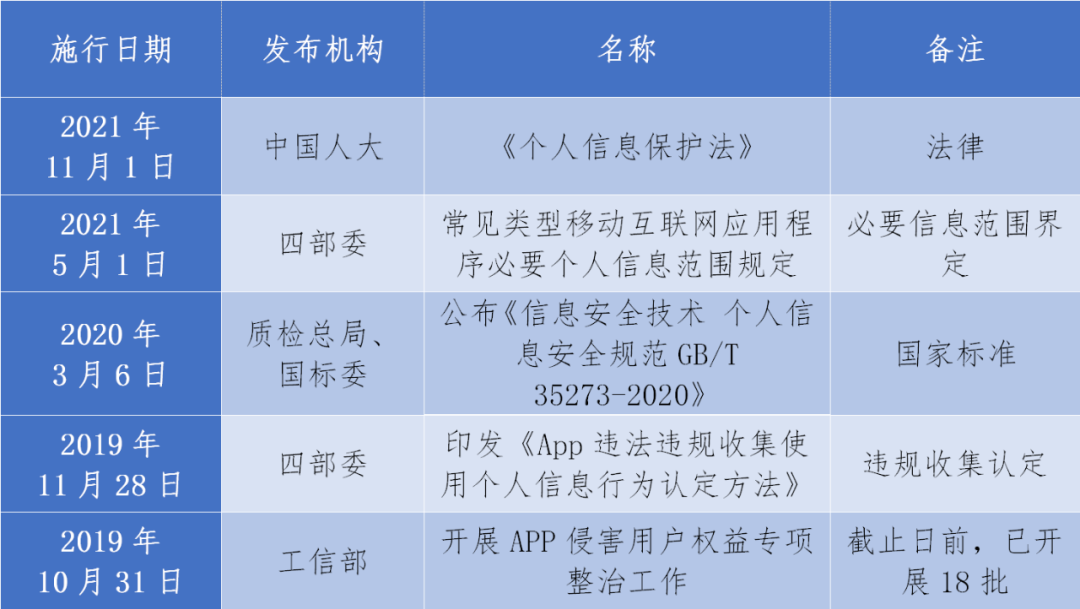 因为《个人信息保护法》是11月1日施行,在此之前,国家监管在这一方面,主要是工信部通管局从2019年开始的App整治行动,这也是近两年威力比较大的监管行动。