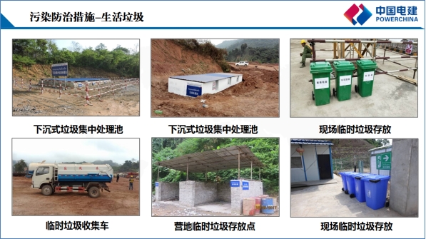不断完善建设和运营过程环保管控手段,通过每周、每月定期检查,不断加大过程监管力度。集中采购配备水、气、声环境便携监测设备,监测范围含盖了现场空气质量(PM2.5、PM10、TSP)、噪音、污水(PH、总磷、氨氮、COD、重金属)、废水总悬浮物等污染因子。根据各梯级电站建筑物总体布置,对各施工生产场所截排水设施及线路、弃渣场水土保持措施、污废水排放流向等进行系统环境监测规划。对各现场坝址、隧洞、渠、堰、生活营地、油库、骨料加工、混凝土拌合、弃渣场等场所的水、气、声污染物进行了具体标记和布点,制定《监测点位分项布置图》和《环境监测总布置图》。每季度对枢纽区上下游水质进行1次监测,每月对场所污染物进行4次监测,并在醒目位置配置多个环境监测数据显示大屏幕,对粉尘、烟尘、温度、噪音等污染物进行实时监测后对外告知。