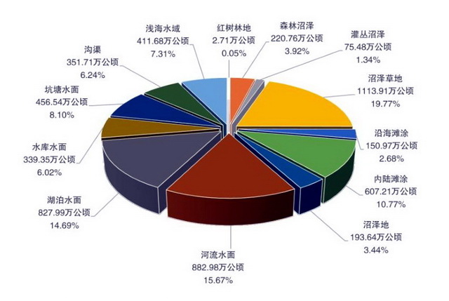 全国湿地面积及比例示意图。资料来源:《全国湿地保护规划(2022—2030年)》