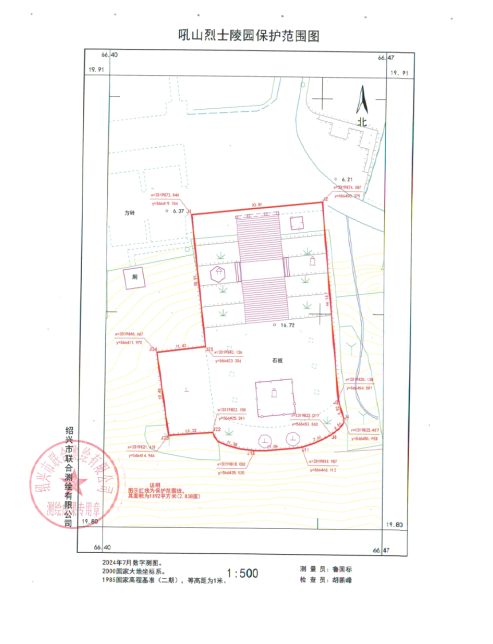 吼山烈士陵园保护范围图红线范围内,保护范围1892平方米。烈士纪念设施保护范围内的土地和设施受法律保护,任何组织和个人不得在烈士纪念设施保护范围内从事与纪念英烈无关或者有损纪念英烈环境和氛围的活动,不得侵占烈士纪念设施保护范围内的土地和设施,不得破坏、污损烈士纪念设施。