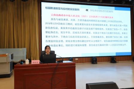 课堂中,法治宣讲团成员赖映渠重点围绕《中华人民共和国未成年人保护法》《中华人民共和国预防未成年人犯罪法》等相关法律法规,深入解读 “一号检察建议”“强制报告制度”等文件精神,结合司法实践中的典型案例以案释法,重点对履行好强制报告义务、预防和妥善处置校园欺凌、防范未成年人性侵害等方面进行了深入浅出地讲解,助力教职员工进一步提高对未成年人保护的认识,明确职责使命,不断提高依法执教水平。
