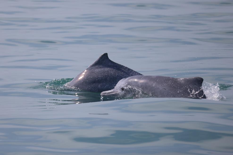 科研人员在海南岛西南海域目击到中华白海豚。新华社发