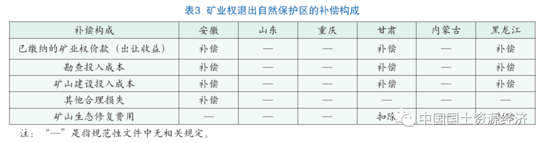 第一,缺少国家层面的统一规定,退出补偿多依赖地方政府自行规定。由于国家层面对于矿业权退出自然保护区的权益补偿仅有一些抽象、原则性的规定,对哪些矿业权人进行补偿,对矿业权人的哪些支出予以补偿,补偿金额的确定要遵循什么样的程序,在何时、符合何种条件的前提下向矿业权人支付补偿,等等,均由地方政府自行规定,导致各地补偿机制存在较大差异,矿业权人的合法权益往往被低估。在补偿机制的很多环节上,只有“一矿一策”而没有“统一尺度”,一些地区的补偿标准较高,一些地区的补偿标准较低,其间差异很难说是出于公平公正的考量,情况相似的矿业权在不同地区也可能获得不同数额的补偿。例如,在补偿对象上,安徽省规定对于整体退出的矿业权,就其整体予以补偿;对于变更避让退出的矿业权,就其退出部分予以补偿。重庆市对于变更避让退出的采矿权,则仅有“可以”补偿的规定;对于变更避让退出的探矿权,更是未列入补偿范围。而相较于安徽省和重庆市,补偿对象范围收缩得更为明显的是甘肃省,该省将矿业权从自然保护区退出的方式划分为三种:注销、扣除和补偿。对于采取前两种方式退出的矿业权,均不予补偿。在涉及财政出资的问题上,各地也有不同规定。安徽、山东两省规定,对财政资金全额出资的探矿权不予补偿;属于财政资金与社会资金合作的,按照出资比例核减即可。黑龙江、甘肃两省的规定则是,探矿权只要涉及财政出资均不予以补偿。又如,在补偿金的构成上,安徽省将矿业权人的“其他合理损失”也包含在补偿范围内,其他地区则无此类规定。除省级层面的差异外,同一省份不同市县的补偿标准也存在差异。以内蒙古自治区为例,由于省级规范性文件未对补偿金构成作出明确规定,其所辖呼伦贝尔市和包头市的补偿金构成即以市级规范性文件各自予以明确,包头市的探矿权补偿范围仅包括勘查投入和探矿权价款,呼伦贝尔市的探矿权补偿范围则在此基础上还囊括了探矿权技术服务费、探矿权使用费、探矿权发生转让时产生的费用等。