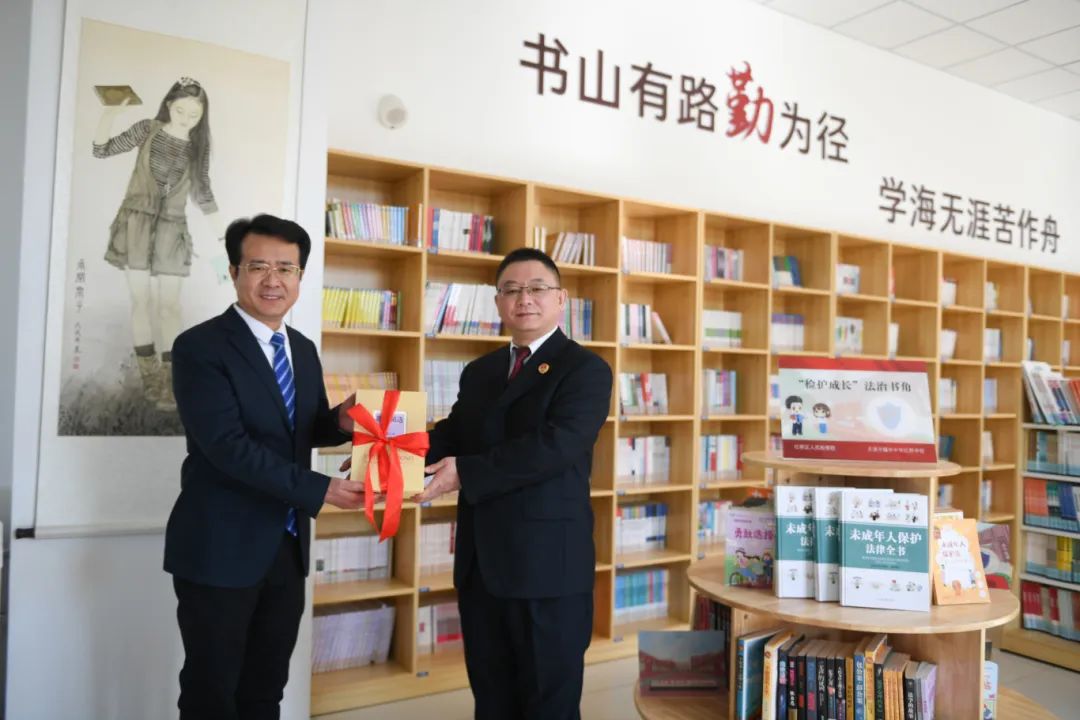 法治书角揭牌仪式上,周铁震副检察长与汪新华书记、刘学宇校长共同揭牌,并向学校捐赠了《未成年人保护法律全书》等一系列书籍。在图书选择上,红桥区检察院根据未成年人的年龄、生理、心理特点和接受能力,精心挑选适合高中学生阅读的书籍,内容丰富,覆盖法律、教育、科普、古典名著、红色经典等。揭牌仪式后,周铁震副检察长与学生代表共同学习了《未成年人保护法》的相关内容,鼓励同学们认真学习、自觉守法,扣好人生第一粒法治纽扣。