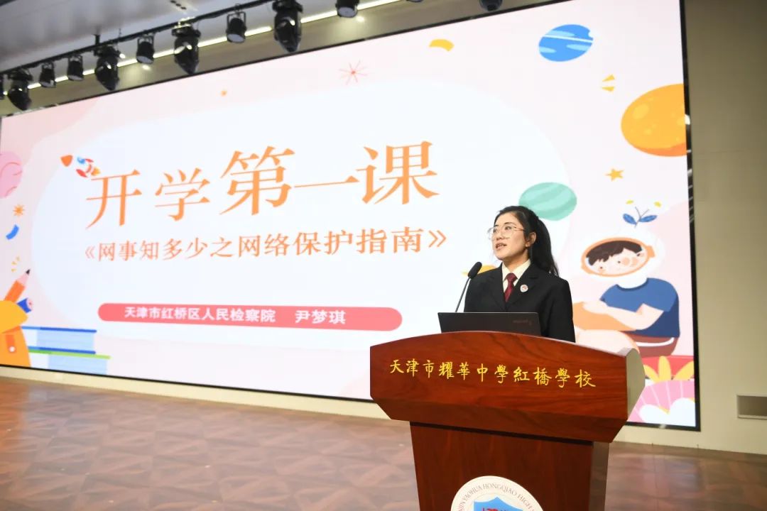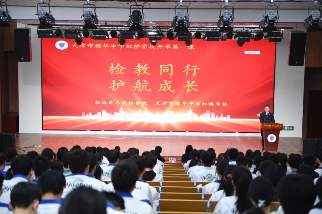 为进一步助力学校打造平安法治校园,提升未成年人法律素养和法治意识,开学首日,红桥区检察院干警走进天津市耀华中学红桥学校为全校师生讲授法治“开学第一课”,为同学们送上新学期“开学礼”。红桥区检察院党组成员、副检察长周铁震,耀华中学红桥学校党总支书记汪新华、党总支副书记、校长刘学宇及全校师生参加活动。